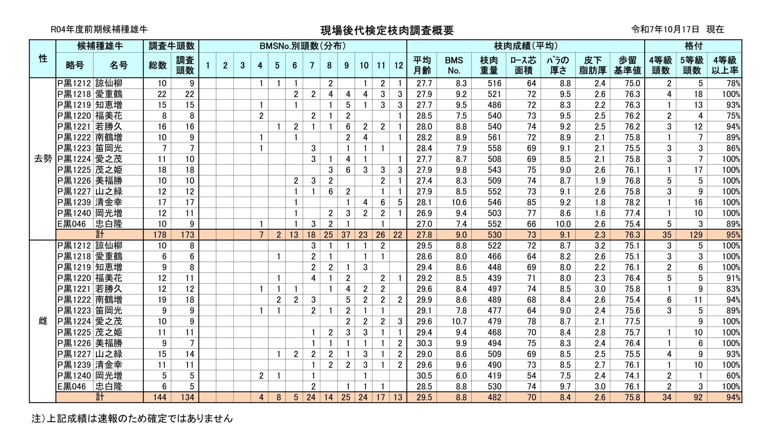・R04現検(前期)現場後代検定枝肉調査概要(令和7年10月17日更新)