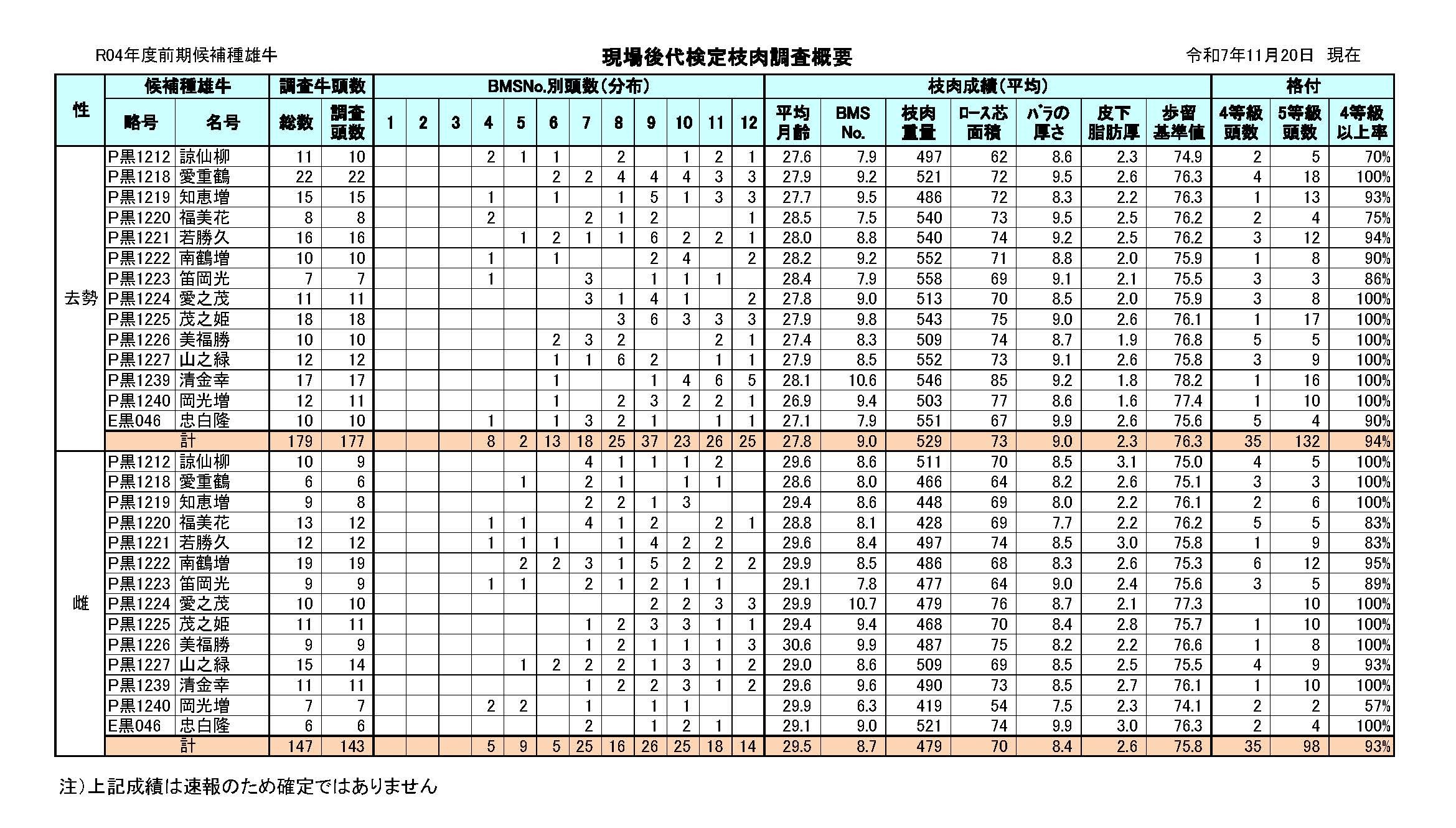 ・R04現検(前期)現場後代検定枝肉調査概要(令和7年11月20日更新)